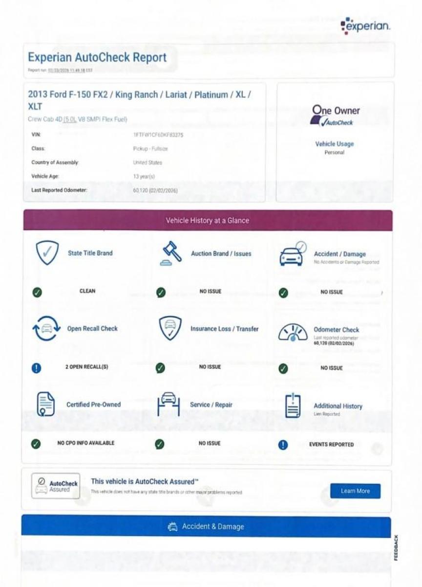 This 2013 Ford F-150 King Ranch LOW MILES 60,125 1 OWNER was sold on 2026-04-14, below are similar vehicles that are still available.